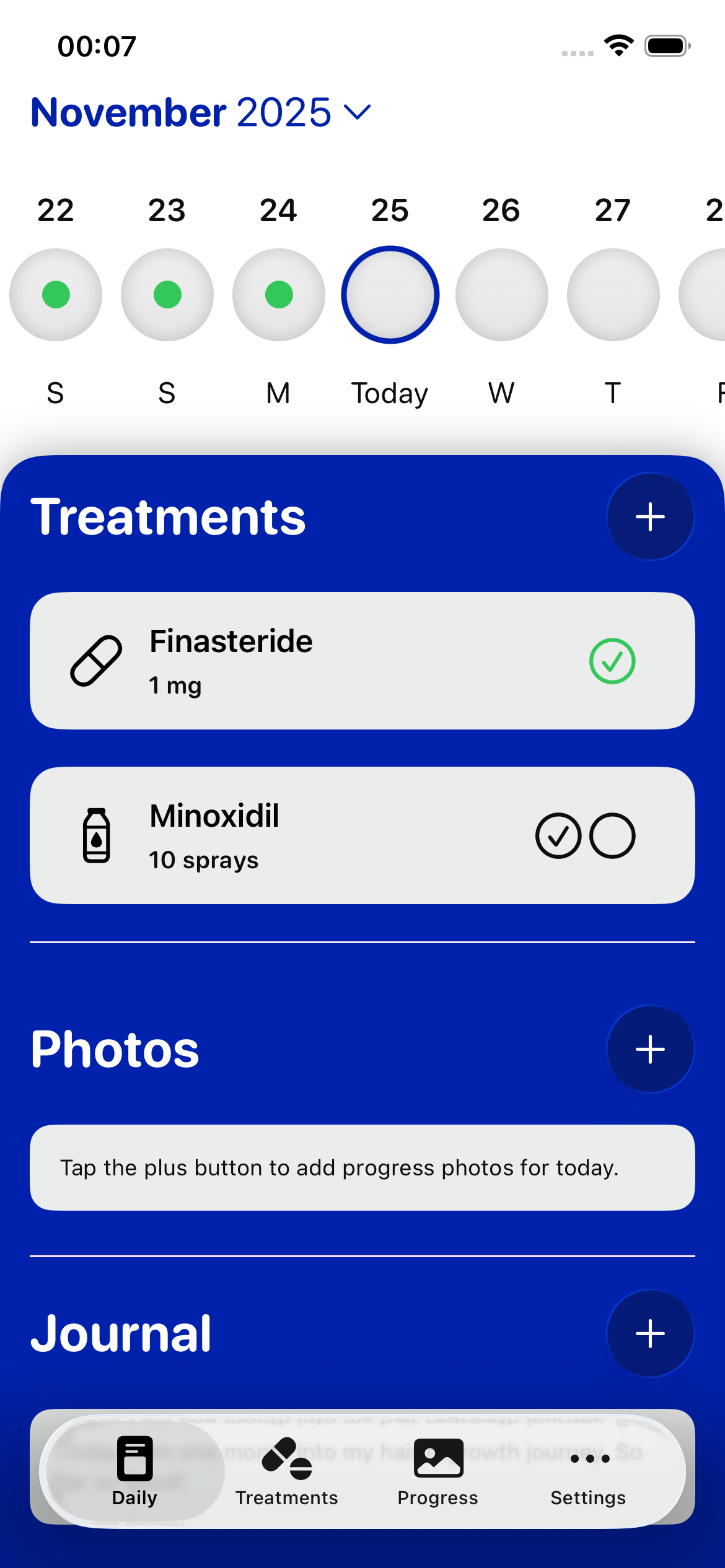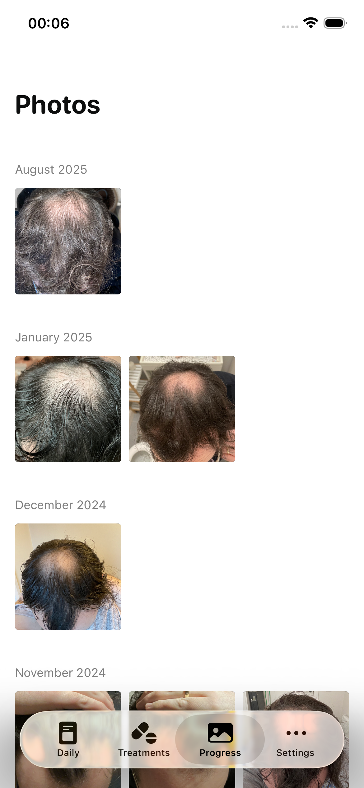 Track Hair keeps every treatment on schedule so you can see progress faster. Build a routine, capture photos, and get timely nudges that match your growth cycle.